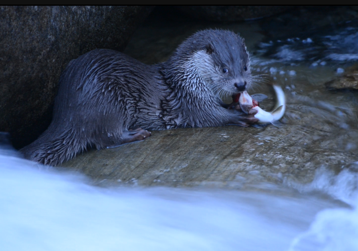 唐家河再次记录到欧亚水獭进食珍贵画面