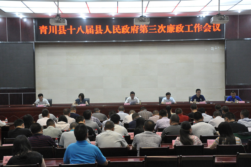 6月5日,县委副书记、县长刘自强在行政中心主持召开十八届县政府第三次廉政工作暨推进法治政府建设工作会,主要任务是贯彻落实中央、省、市有关会议精神,安排部署青川县2019年政府系统廉政建设和法治政府建设工作。