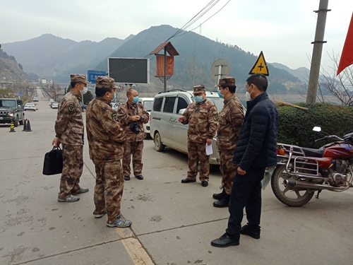 2月5日,县人民武装部副部长何颖一行来沙州镇检查疫情防控工作,看望坚守在疫情防控卡点一线的工作人员。