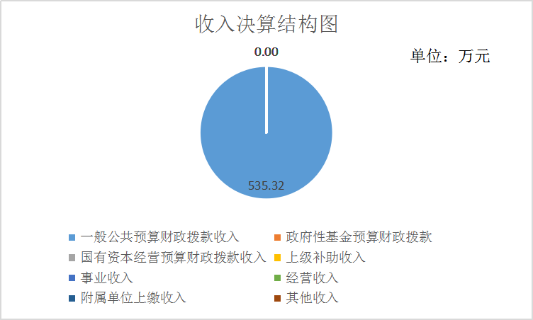 2019年本年收入合计535.32万元,其中:一般公共预算财政拨款收入535.32万元,占100.00%;政府性基金预算财政拨款收入0.00万元,占0.00%;上级补助收入0.00万元,占0.00%;事业收入0.00万元,占0.00%;经营收入0.00万元,占0.00%;附属单位上缴收入0.00万元,占0.00%;其他收入0.00万元,占0.00%。