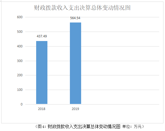 (二)一般公共预算财政拨款收支。2019年度一般公共预算财政拨款年初结转和结余13.72万元,本年收入550.81万元,本年支出564.54万元,年末结转和结余0万元。