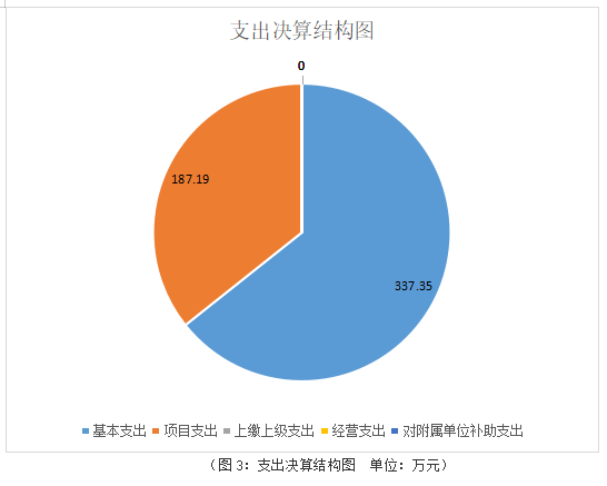 2019年本年支出合计564.54万元,其中:基本支出377.35万元,占66.84%;项目支出187.19万元,占33.16%;上缴上级支出0万元,占0%;经营支出0万元,占0%;对附属单位补助支出0万元,占0%。