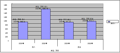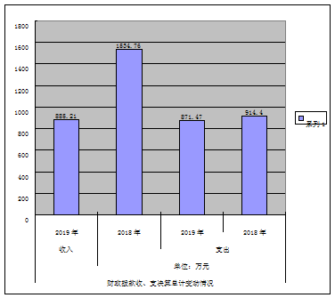 2019年度收入总计885.21万元,支出总计871.47万元。与2018年相比,收入总计减少649.55万元,下降42.32%,主要变动原因是基金预算的减少;支出总计减少42.93万元,下降4.69%,主要原因是对村级资金的减少。