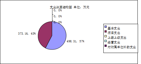 2019年本年支出合计871.47万元,其中:基本支出498.31万元,占57.18%;项目支出373.16万元,占42.82%;上缴上级支出0万元,占0%;经营支出0万元,占0%;对附属单位补助支出0万元,占0%。