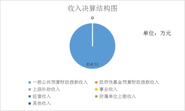 2019年本年收入合计458.51万元,其中:一般公共预算财政拨款收入458.51万元,占100%;政府性基金预算财政拨款收入0万元,占0%;上级补助收入0万元,占0%;事业收入0万元,占0%;经营收入0万元,占0%;附属单位上缴收入0万元,占0%;其他收入0万元,占0%。