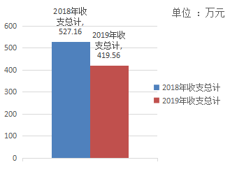 2019年度收、支总计419.56万元。与2018年相比,收、支总计各减少53.80万元,下降20.41%。主要变动原因是两名职工调离本单位。