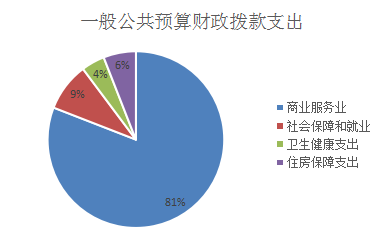 2019年一般公共预算财政拨款支出209.78万元,主要用于以下方面:商业服务业(类)支出169.72万元,占80.90%;社会保障和就业(类)支出18.61万元,占8.87%;卫生健康支出(类)9万元,占4.29%;住房保障支出(类)12.46万元,占5.94%。