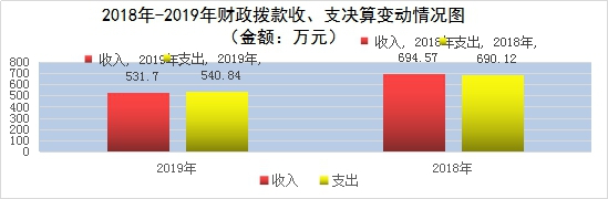 2019年度收入总计531.79万元,支出总计540.84万元。与2018年相比,收入总计减少162.78万元、支出总计减少149.28万元,减少27.6%。主要变动原因:是县级财政调减书画展工作经费、2019年奖金指标、项目指标。