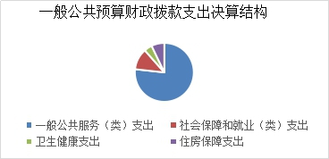 2019年一般公共预算财政拨款支出540.84万元,主要用于以下方面:一般公共服务(类)支出415.02万元,占76.74%;社会保障和就业(类)支出63.45万元,占11.73%;卫生健康支出23.99万元,占4.44%;住房保障支出38.38万元,占7.09%。