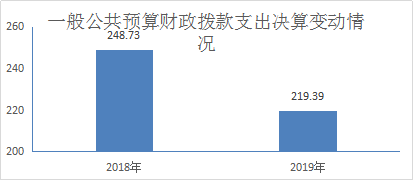 2019年一般公共预算财政拨款支出219.39万元,占本年支出合计的96.9%。与2018年相比,一般公共预算财政拨款减少29.34万元,下降11.8%。