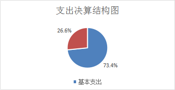 2019年度支出总计249.43万元,与2018年相比,支出减少66.5万元,下降21%。2019年本年支出合计226.39万元,其中:基本支出166.11万元,占73.4%;项目支出60.28万元,占26.6%;上缴上级支出0万元,占0%;经营支出0万元,占0%;对附属单位补助支出0万元,占0%。