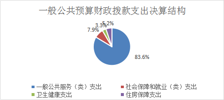 2019年一般公共预算财政拨款支出219.39万元,主要用于以下方面:一般公共服务(类)支出183.34万元,占83.6%;社会保障和就业(类)支出17.27万元,占7.9%;卫生健康支出7.27万元,占3.3%;住房保障支出11.51万元,占5.2%。