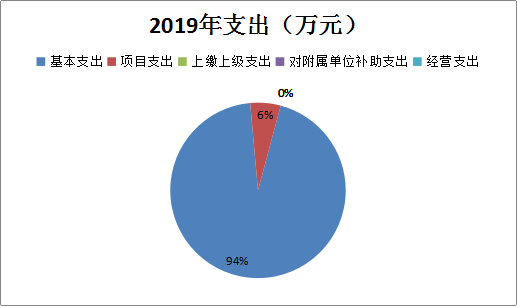 2019年本年支出合计1593.73万元,其中:基本支出1504.68万元,占94.41%;项目支出89.05万元,占5.59%;上缴上级支出0万元,占0%;经营支出0万元,占0%;对附属单位补助支出0万元,占0%。