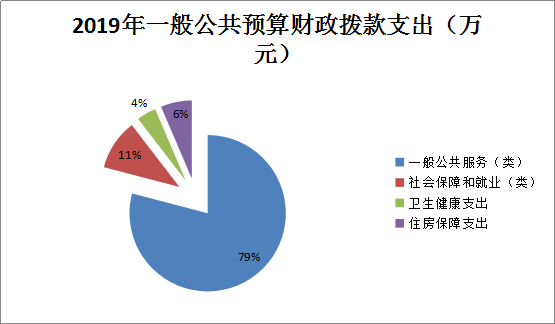 2019年一般公共预算财政拨款支出1593.73万元,主要用于以下方面:一般公共服务(类)支出1260.19万元,占79.07%;教育支出(类)0万元,占0%;科学技术(类)支出0万元,占0%;文化旅游体育与传媒(类)支出0万元,占0%;社会保障和就业(类)支出167.14万元,占10.49%;卫生健康支出64万元,占4.02%;住房保障支出102.4万元,占6.42%。