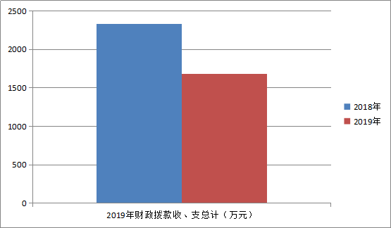 2019年财政拨款收、支总计1683.91万元。与2018年相比,财政拨款收、支总计各减少649.78万元,下降27.84%。主要变动原因是因是人员退休及调出,项目经费压缩。