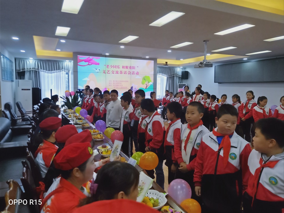 活动共分为三个流程进行,第一个流程是致欢迎词、重阳节故事由来短片欣赏、民间习俗文化普及;第二个流程则是孩子们为爷爷奶奶赠送节日贺卡、为爷爷奶奶捶背、捏肩等情感倾诉、交流;最后一个流程文艺节目表演、欣赏、互鉴,高亢的歌声、忘我的演奏、热情的交谈将整个活动渲染到一个新高度。