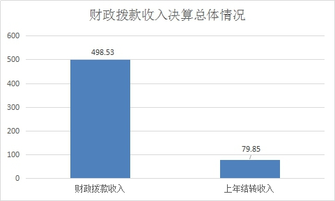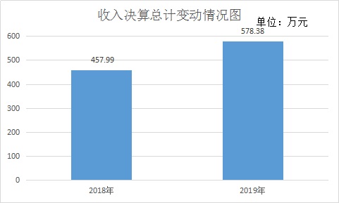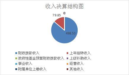 2019年本年收入合计578.38万元,其中:其中:财政拨款收入498.53万元,占86.19%;上年结转收入79.85万元,占13.81%;政府性基金预算财政拨款收入0万元,占0%;上级补助收入0万元,占0%;事业收入0万元,占0%;经营收入0万元,占0%;附属单位上缴收入0万元,占0%;其他收入0万元,占0%。