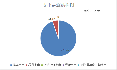 2019年本年支出合计292.13万元,其中:基本支出276.76万元,占94.74%;项目支出15.37万元,占5.26%;上缴上级支出0.00万元,占0.00%;经营支出0.00万元,占0.00%;对附属单位补助支出0.00万元,占0.00%。