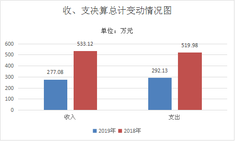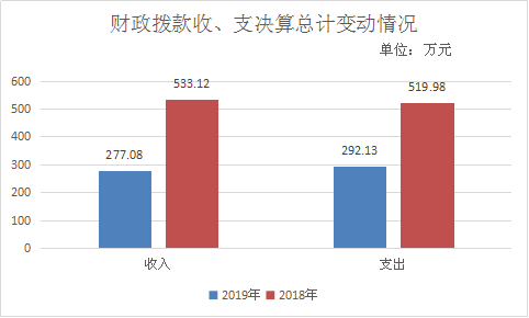 2019年财政拨款收入总计277.08万元、支出总计292.13万元。与2018年相比,财政拨款收入总计减少256.04万元,下降48.03%;支出总计减少227.85万元,下降43.82%。主要变动原因一是压缩一般性开支。