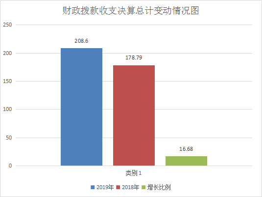 2019年财政拨款收、支总计208.6万元。与2018年相比,财政拨款收、支总计各增加29.81万元,增长16.68%。主要变动原因是人员增加、公用经费增加。