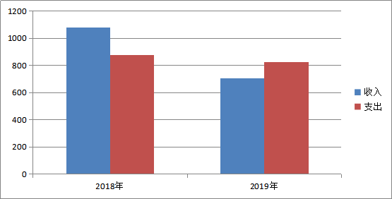 2019年度收入总计706.55万元,支出总计824.37万元。与2018年相比,收入减少360.52万元,下降34%;支出减少54.64万元,下降6.2%。主要变动原因一是压缩一般性支出;二是办案经费结转至下年支出。