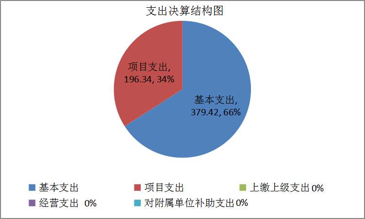 2019年本年支出合计575.76万元,其中:基本支出379.42万元,占65.9%;项目支出196.34万元,占34.1%;上缴上级支出0万元,占0%;经营支出0万元,占0%;对附属单位补助支出0万元,占0%。
