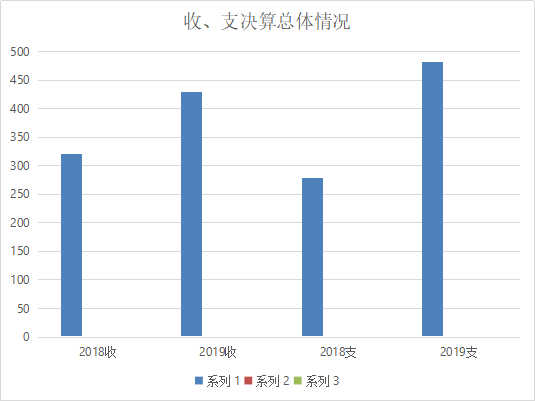 2019年度收、支总计429.02、482.24万元。与2018年相比,收、支总计各增加108.85、203.87万元,增长25%、42%。主要变动原因是2019年职工调资及2019年人员新增等导致增加。