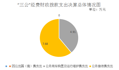 2019年度“三公”经费财政拨款支出决算中,因公出国(境)费支出决算0万元,占0%;公务用车购置及运行维护费支出决算4.91万元,占39%;公务接待费支出决算7.68万元,占61%。具体情况如下: