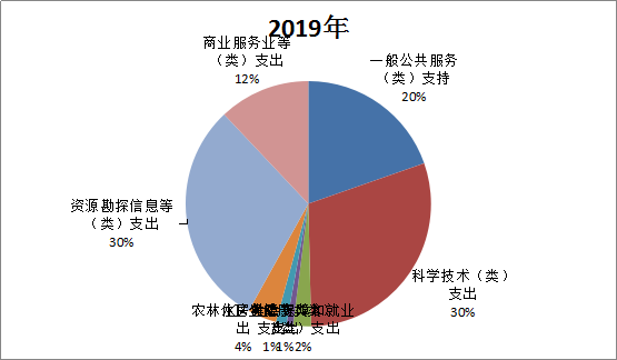 2019年度收入总计1750.28万元,支出总计2088.11万元。与2018年相比,收入减少719.00万元,下降29.12%;支出增加131.80万元,增长6.73%。主要变动原因是:一是2019年一般公共服务支出收入347.06万元,支出410.28万元,2018年收入608.04万元,支出539.82万元;二是2019年科学技术支出收入538.97万元,支出626.07万元,2018年收入585.42万元,支出493.32万元;三是2019年农林水支出收入80.00万元,支出80.00万元,2018年收入59.17万元,支出14.17万元;四是2019年资源勘探信息等支出收入657.60万元,支出624.00万元,2018年收入578.00万元,支出438.00万元;五是2019年商业服务业等支出收入30.00万元,支出251.11万元,2018年收入763.61万元,支出381.86万元。