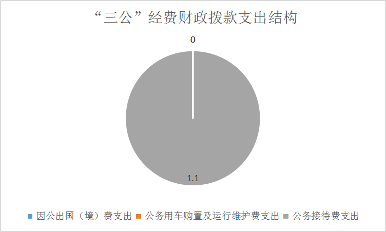 2019年“三公”经费财政拨款支出决算中,因公出国(境)费支出决算0万元,占0%;公务用车购置及运行维护费支出决算0万元,占0%;公务接待费支出决算1.1万元,占100%。具体情况如下:
