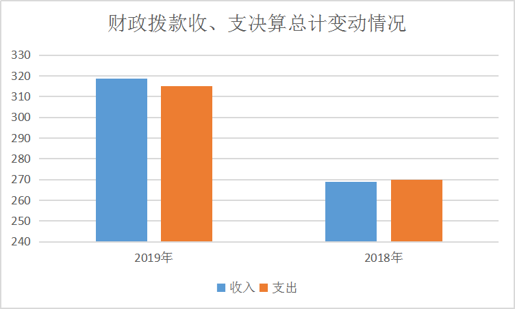 2019年财政拨款收入318.63万元、支出总计315.04万元。与2018年相比,财政拨款收入增加49.71万元,收入增加18.49%,主要变动原因:省财政专项资金有所增加;支出总计增加45.23万元,支出增加16.76%,主要变动原因:使用上年度省财政结余资金。