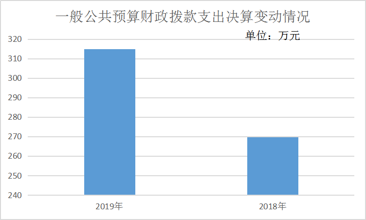 2019年一般公共预算财政拨款支出315.04万元,占本年支出合计的100%。与2018年相比,一般公共预算财政拨款增加45.23万元,增长16.76%。主要变动原因是使用上年度省财政结余资金。