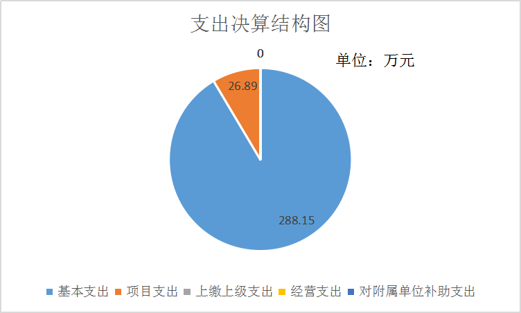 2019年本年支出合计315.04万元,其中:基本支出288.15万元,占91.46%;项目支出26.89万元,占8.54%;上缴上级支出0万元,占0%;经营支出0万元,占0%;对附属单位补助支出0万元,占0%。