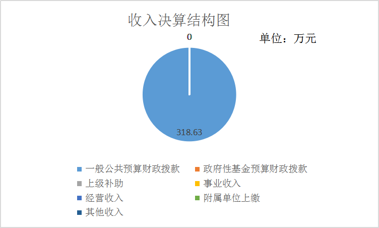 2019年本年收入合计318.63万元,其中:一般公共预算财政拨款收入318.63万元,占100%;政府性基金预算财政拨款收入0万元,占0%;上级补助收入0万元,占0%;事业收入0万元,占0%;经营收入0万元,占0%;附属单位上缴收入0万元,占0%;其他收入0万元,占0%。
