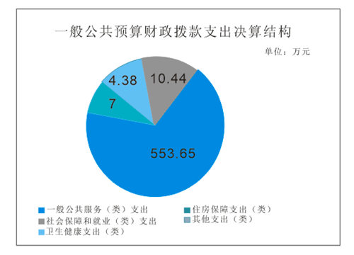 2019年一般公共预算财政拨款支出575.47万元,主要用于以下方面:一般公共服务(类)支出553.65万元,占96.21%;社会保障和就业(类)支出10.44万元,占1.81%;卫生健康支出4.38万元,占0.76%;住房保障支出7万元,占1.22%;