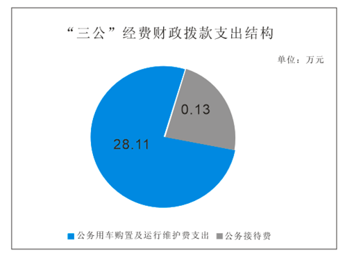 2019年“三公”经费财政拨款支出决算中,因公出国(境)费支出决算0万元,占0%;公务用车购置及运行维护费支出决算28.11万元,占100%;公务接待费支出决算0.13万元,占21.67%。具体情况如下: