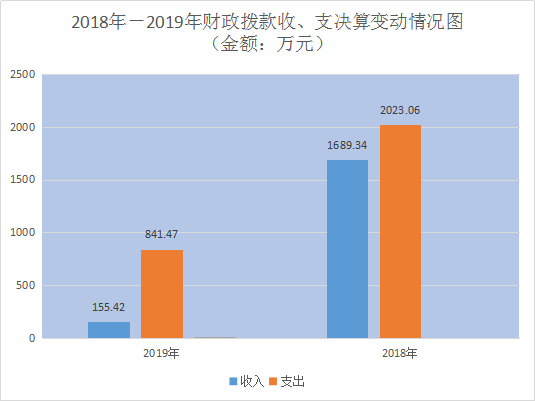 2019年年初结转和结余693.61万元,本年度收入总计155.42万元、支出总计841.47万元。与2018年相比,收、支总计各减少1533.92万元、1181.56万元,各下降90.80%、58.40%。主要变动原因是青川县农工委合并到青川县农业农村局,2019年度只涉及1-5月经费收支。