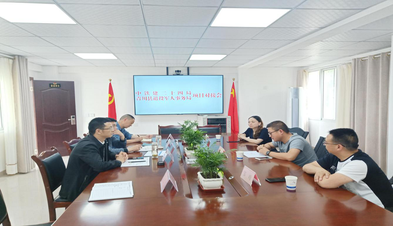 5月19日,青川县退役军人事务局与央企中铁建二十四局就项目对接召开座谈会。,中铁建二十四局西南营销部经理袁俊涛,营销部副部长邹峰,上海同济大学西南办事处商务总监刘颖,县退役军人事务局长李在强,副局长王万寿出席会议。