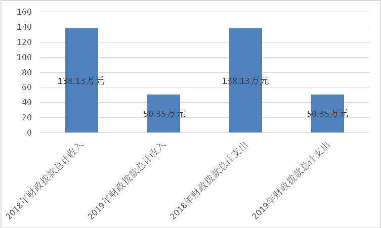 2019年财政拨款收入129.36万元、支出78.29万元。与2018年相比,总计收入减少87.78万元,支出减少87.78万元,收入下降63.55%,支出下降63.55%。