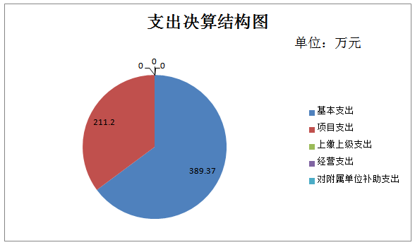 2019年本年支出合计600.57万元,其中:基本支出389.37万元,占64.83%;项目支出211.2万元,占35.17%;上缴上级支出0万元,占0%;经营支出0万元,占0%;对附属单位补助支出0万元,占0%。