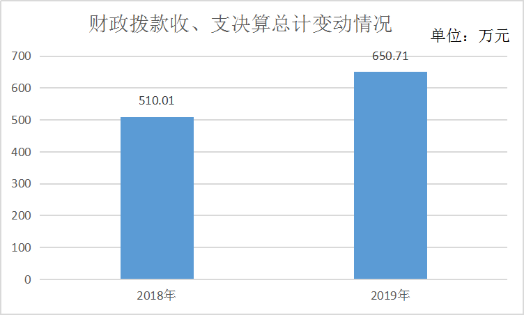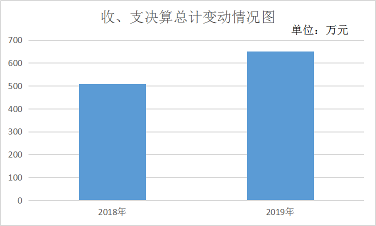 2019年度收、支总计650.71万元。与2018年相比,收、支总计各增加140.7万元,增长27.58%。主要变动原因是编制内实有人数增加,导致人员基本支出及日常事务公用支出收支增加。