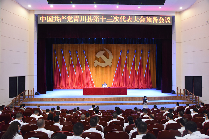 8月15日下午,中国共产党青川县第十三次代表大会在青川县文化中心影剧院召开预备会议,会议应出席代表270人,实到270人,符合法定人数。会议宣读成立各代表团临时党支部的通知;审议并通过代表资格审查委员会建议名单;审议并通过大会主席团成员建议名单;审议并通过大会秘书长建议名单;审议并通过大会议程(草案)。会议由龙兆学同志主持。