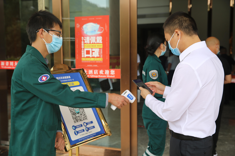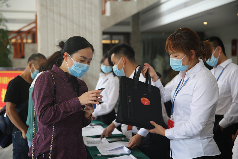 在会议报到处,代表们佩戴口罩陆续前往报到,测量体温、领取参会证件和会议资料。大家对即将召开的青川县第十九届人民代表大会第一次会议充满信心和期待。