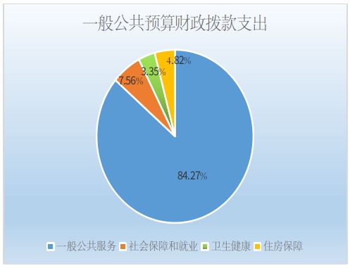 2020年一般公共预算财政拨款支出904.41万元,主要用于以下方面:一般公共服务(类)支出762.17万元,占84.27%;教育支出(类)0万元,占0%;科学技术(类)支出0万元,占0%;文化旅游体育与传媒(类)支出0万元,占0%;社会保障和就业(类)支出68.37万元,占7.56%;卫生健康支出30.26万元,占3.35%;住房保障支出43.61万元,占4.82%。