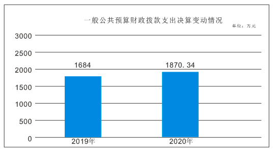 2020年一般公共预算财政拨款支出1870.34万元,占本年支出合计的100%。与2019年相比,一般公共预算财政拨款增加346.47万元,增长20.57%。主要变动原因是人员增加,项目经费增加。