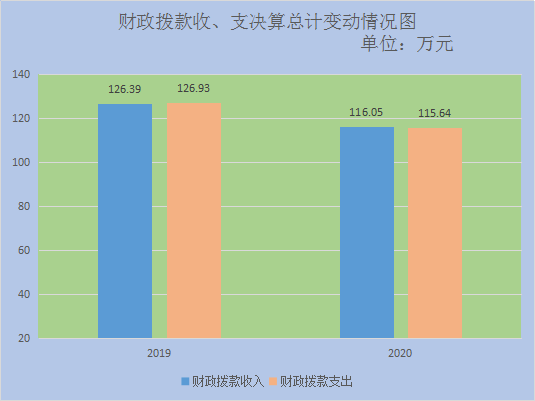 2020年财政拨款收入总计116.05万元、支出总计115.64万元。与2019年相比,收入减少10.34万元,下降8.18%,支出减少11.29万元,下降8.89%。主要变动原因是人员经费开支减少。