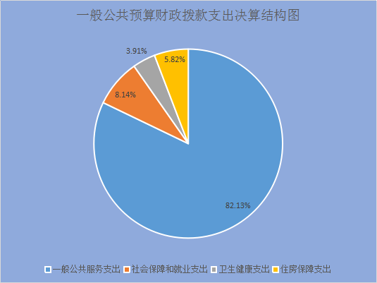 2020年一般公共预算财政拨款支出115.64万元,主要用于以下方面:一般公共服务(类)支出94.98万元,占82.13%;社会保障和就业(类)支出9.41万元,占8.14%;卫生健康支出4.52万元,占3.91%;住房保障支出6.72万元,占5.82%。