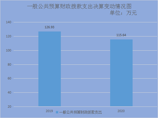 2020年一般公共预算财政拨款支出115.64万元,占本年支出合计的100%。与2019年相比,一般公共预算财政拨款减少11.29万元,下降8.89%。主要变动原因是人员经费减少。