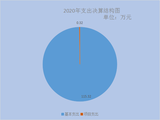 2020年本年支出合计115.64万元,其中:基本支出115.32万元,占99.72%;项目支出0.32万元,占0.28%;
