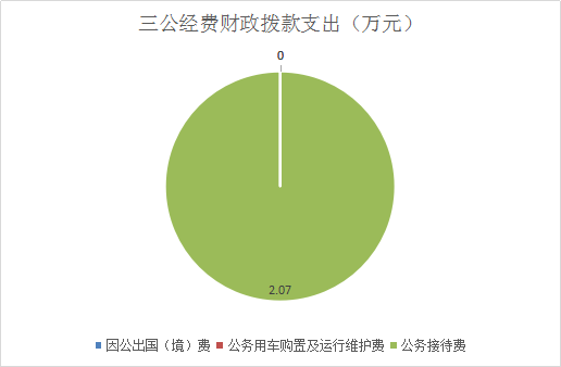 2020年“三公”经费财政拨款支出决算中,因公出国(境)费支出决算0万元,占0%;公务用车购置及运行维护费支出决算0万元,占0%;公务接待费支出决算2.07万元,占100%。具体情况如下: